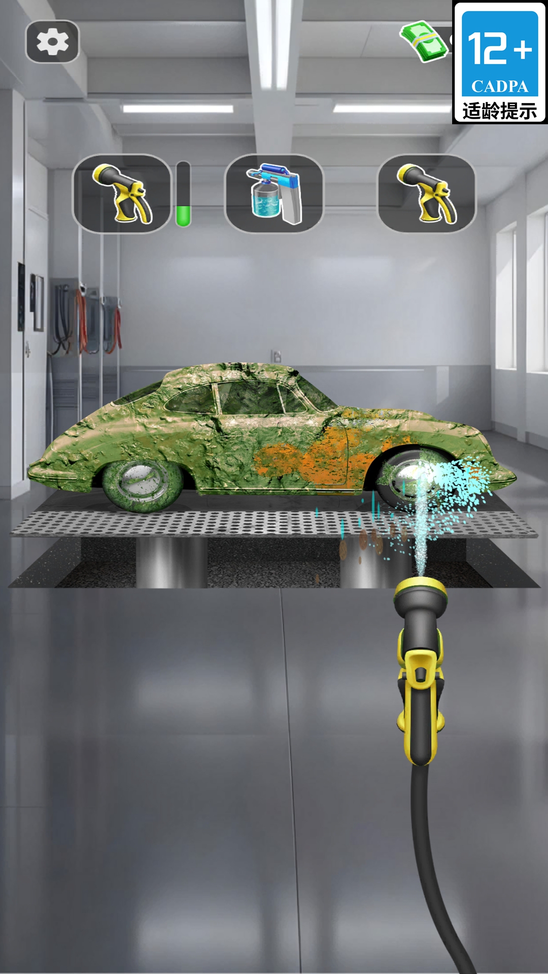 1. 玩家通过手指滑动模拟使用高压水枪、海绵、毛巾等工具,按照正确顺序对车辆进行清洁和护理操作。