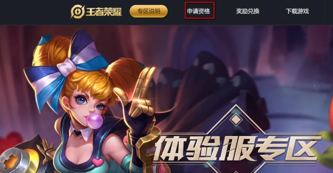 1、可以进入王者荣耀体验服专区官网,点击上方的申请资格按钮。