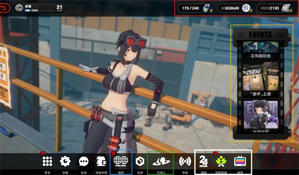 黄框是游戏活动,蓝框和绿框是任务系统和角色。