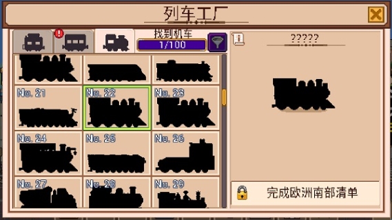 1、首先通过列车工厂的图鉴,可以了解解锁火车头的具体途径,如图所示,解锁当前车头则需要完成欧洲南部清单。