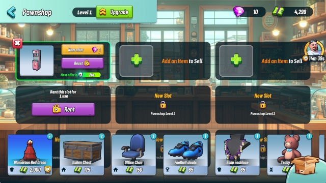 1、通过前面拍卖获得的藏品,我们有两种处理方式,其中一个就是来到自己的典当行中售卖。