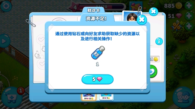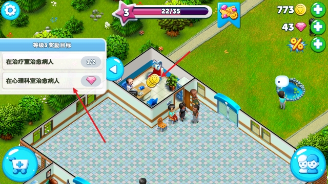 1、在游戏中玩家将要经营一家医院,医院的规模还比较小,玩家需要通过不断的经营扩大规模;