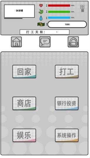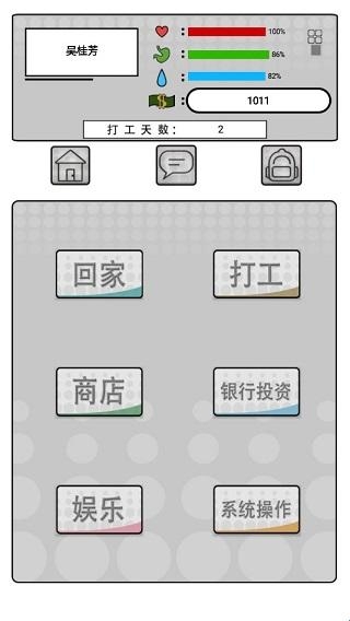 在玩家选择选择打工的过程中,会消耗身体,所以必要的食物和水可以提升你的身体状况,而药品可以消除负面效果。