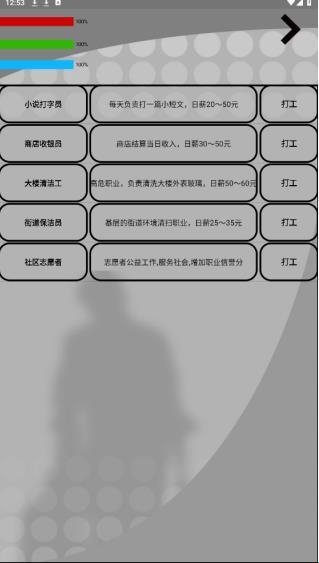 4.进入打工业面,目前我们可以选择的打工选项不多,耗费的时间以及获取的酬劳也会不同。