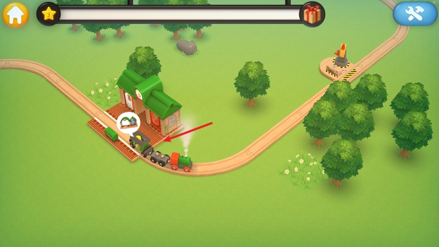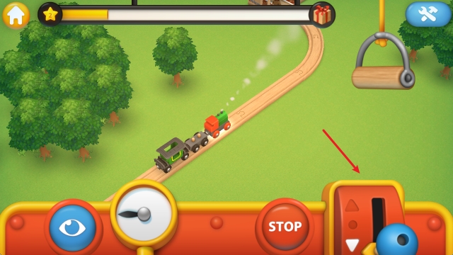 1、游戏中点击小火车,然后通过右侧的拉杆即可控制火车的前进、后退和停止。