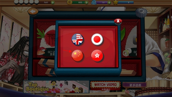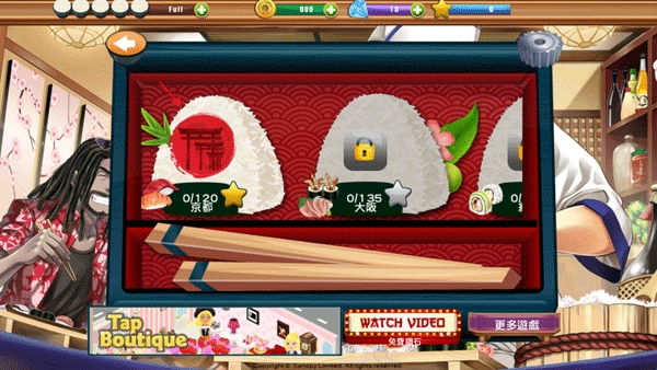 2、游戏有很多地点关卡,每个关卡对应的食物都是不一样的,第一关是在京都。