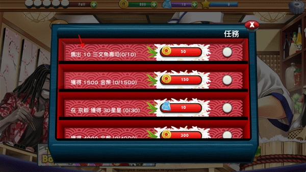 1.游戏目标:玩家的主要目标是经营并扩大自己的寿司店,通过满足顾客的订单,赚取金币,解锁新的寿司款式和食材。