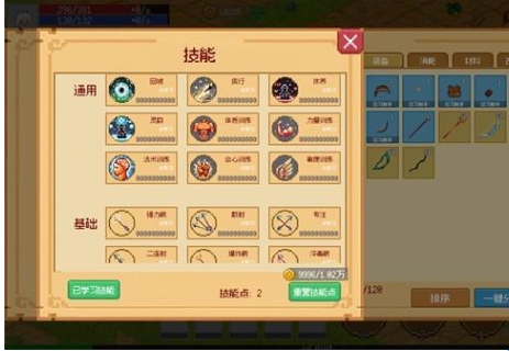 3、点击角色属性下方的技能可以学习不同的招式,每次学习会消耗一点技能点和不同数量的金币。