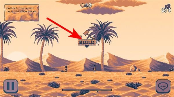 2、进入场景后,点击【BUILD】按钮,打开建设功能界面,准备进行资源收集与建筑搭建。