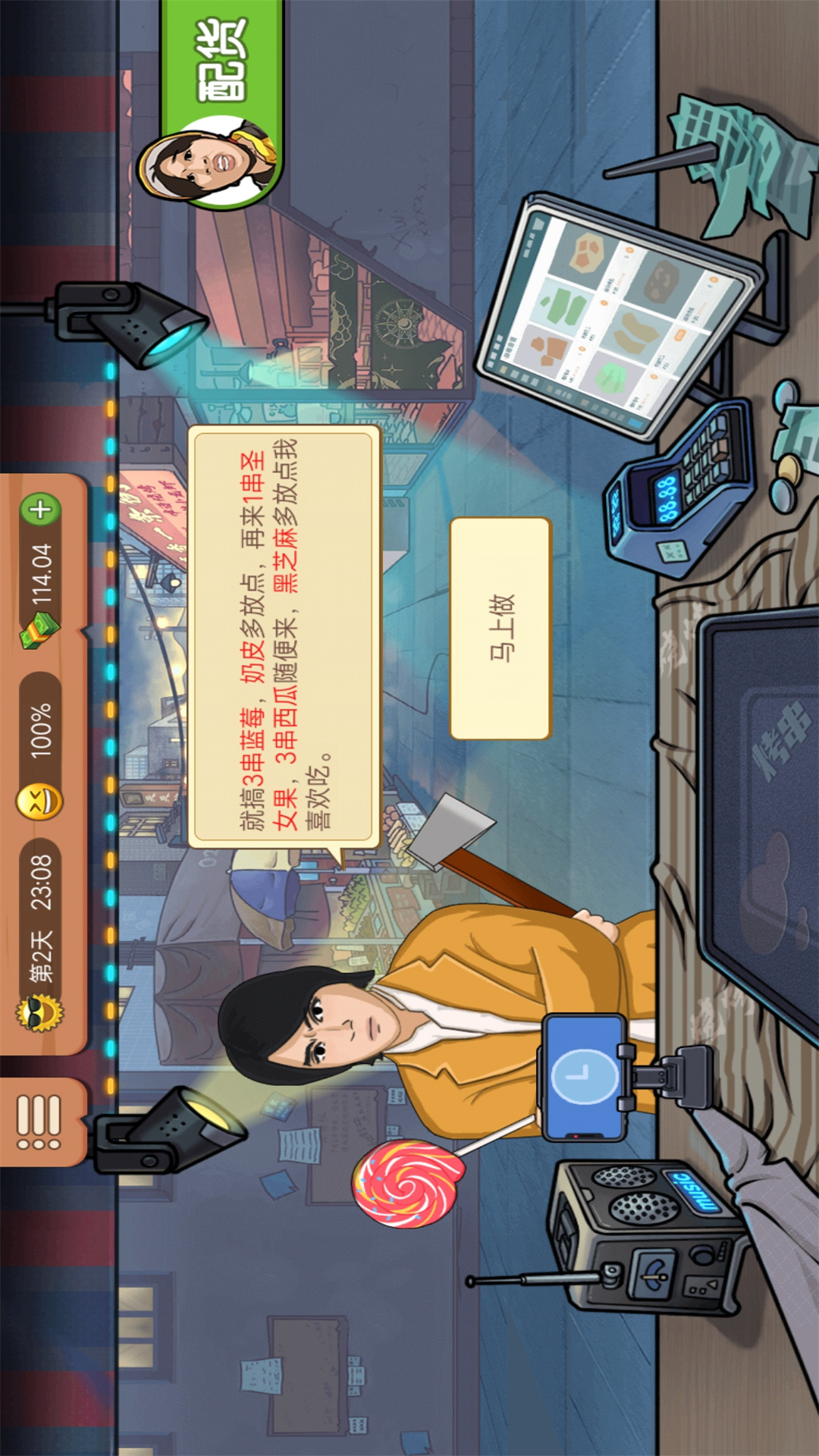 2、无复杂规则限制,玩家可按自身节奏采购、制作、售卖,适配休闲放松场景。