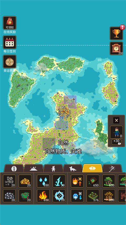5、玩家还可以设置各种自然灾害,如雷电、龙卷风。