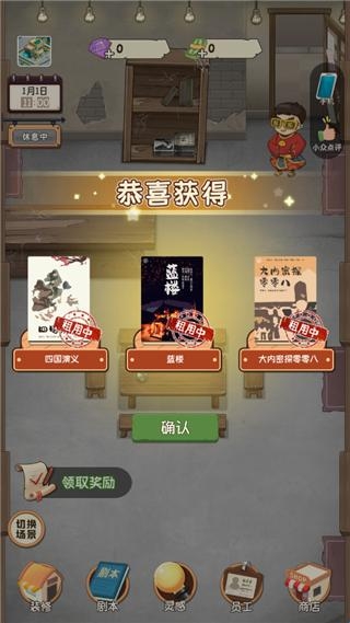 7、我们可以看到店面已经干净了,然后向你的合伙人租借剧本,每个剧本都有租借费,反甲需要好好经营;