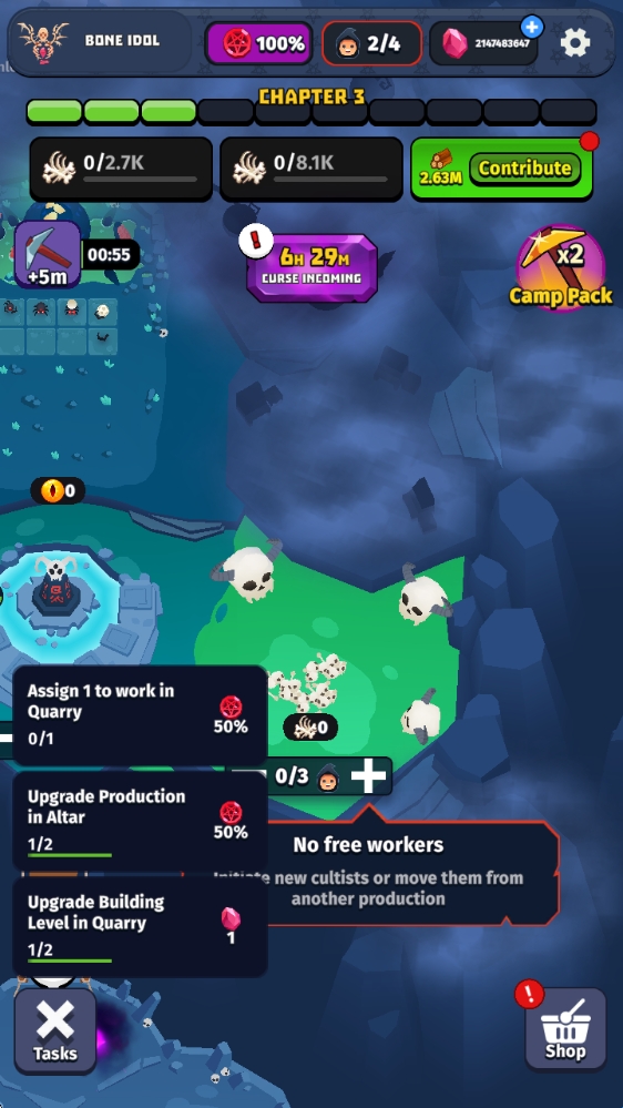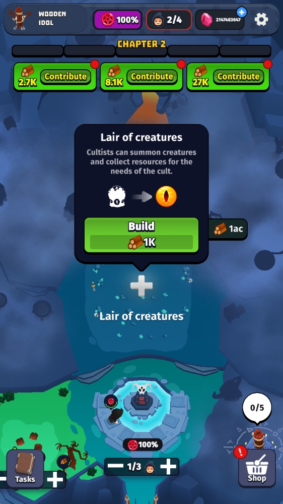 1、管理资源、自动化流程,升级解锁更多的设施,将你的教团发展为繁荣的商业帝国。
