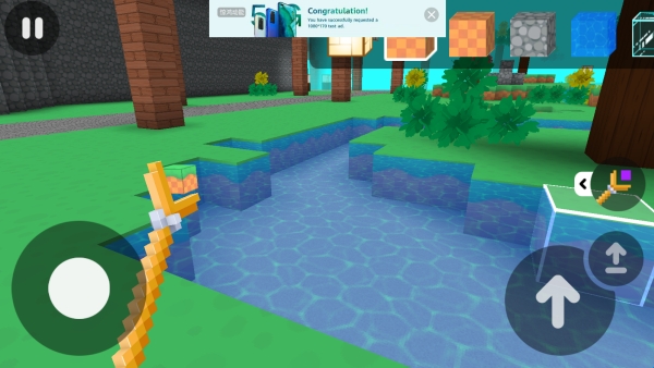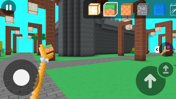 4、虚拟键盘去控制移动方向,左右滑动观察场景,享受建造。