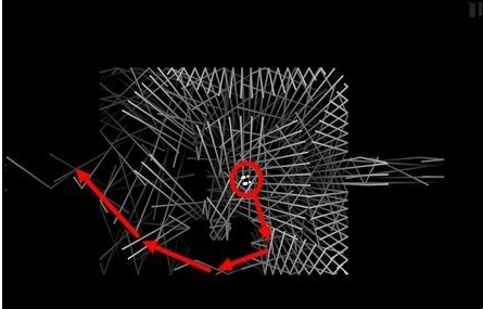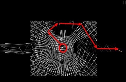 4、最后看到图中中的粗线条白色声音反弹时,就。。门近在咫尺,勇敢的打开门逃离黑暗吧!再利用回声的图像来判断迷宫的道路,最终走出迷局!