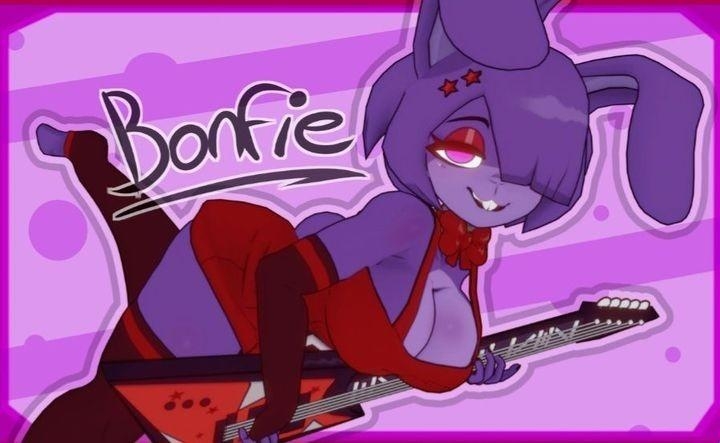 Bonfie是一只身材曲线玲珑的女性化兔子,颜色为紫色,尽管经常与蓝色混淆(这是因为灯光,她穿着红色西装和酒红色袖子。