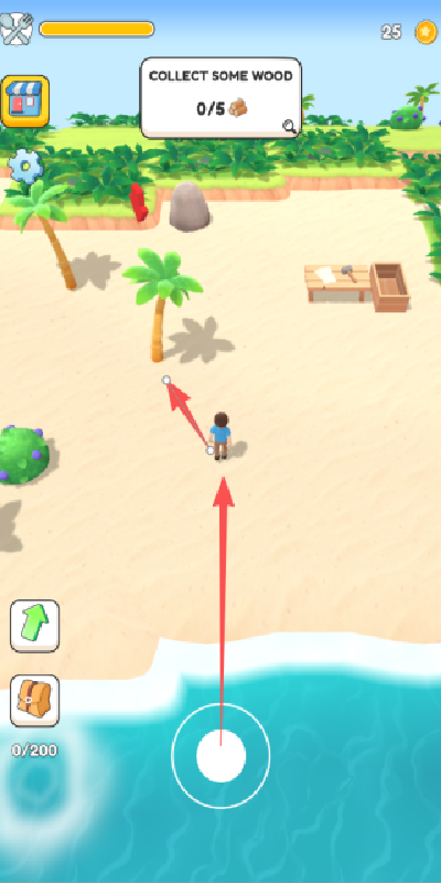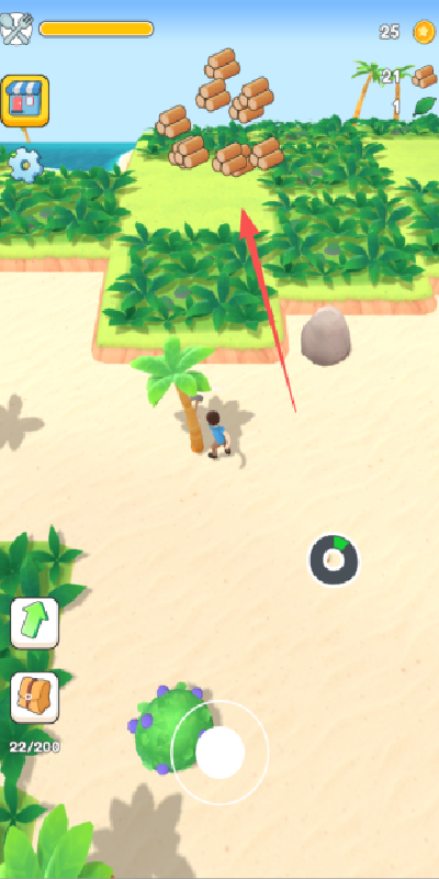 1、点击屏幕中间的按钮,我们可以控制着角色进行移动的,首先走到树边看看吧。