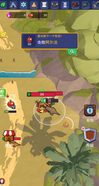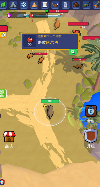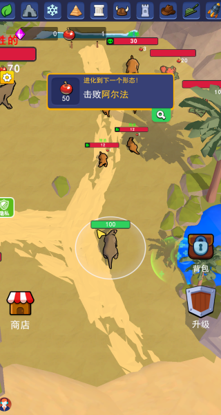 1、进入游戏后,你要操控着自己的角色去收集多个苹果,进化到下一个形态。