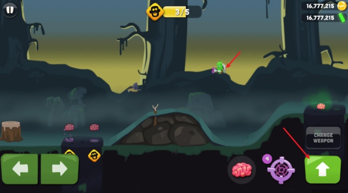 3、僵尸出现后,我们可以使用武器进行抓捕。