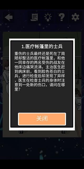 1、开始游戏后,我们会看到一段简短的剧情和相应的疑点。