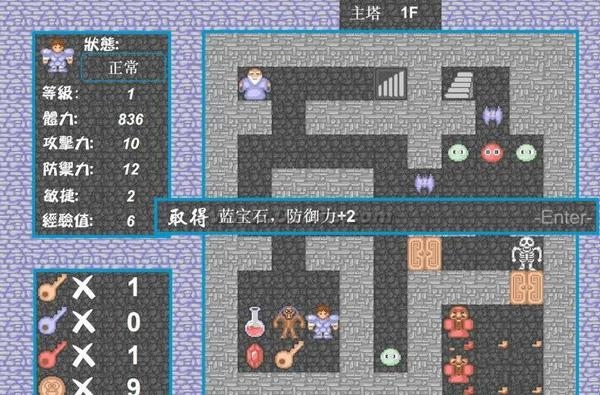 4、防御力好就比他的攻击力低3点(别高于他的攻击力,否则,系统可能因为他打不动你,而直接判他死,之后,你会被迫吃一个蓝宝石让防御提升两点)。