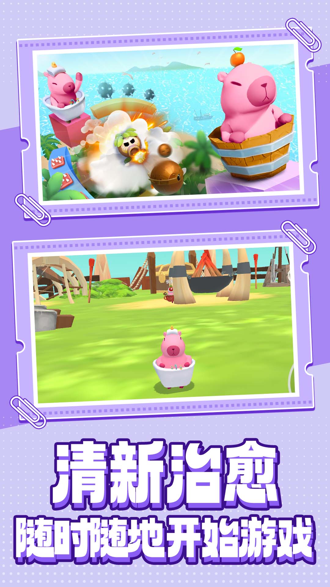 2、与可爱卡皮巴拉伙伴共同冒险,解决趣味谜题挑战,体验独特生存考验、
