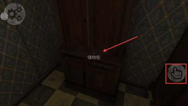 2、找到标有【储物柜】的家具,点击右侧手掌按键,可以触发交互,我们要搜寻每个细节,不放过任何可能。