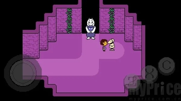 4.北面的藤蔓房间遇到青蛙Froggit,可选择“赞美”让其逃跑,Toriel会协助通过尖刺陷阱。