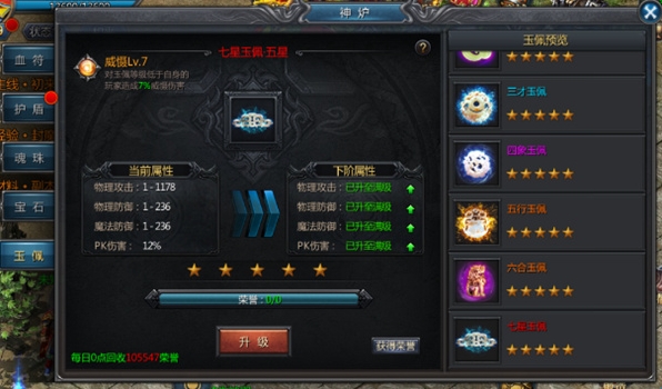 1、玉佩在提升基础属性同时,还可以极大提升玩家的PK伤害。