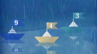 接着往里面望去你会在房子左侧发现一个漏着水的坑里漂浮着三只带着数值的纸船(颜色为:蓝9,黄4,绿3)。