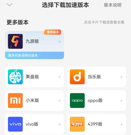 3、部分游戏收录了全版本,大家可以根据自己的需求下载不同平台的版本。每个游戏的加速版本都不一样,不一定能覆盖全部版本。