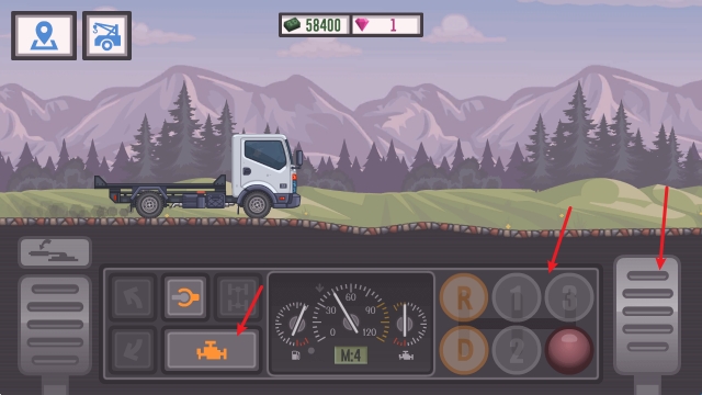 4、开始驾驶后,点击左侧的发动机,随后挂挡按住右侧的油门即可前进。