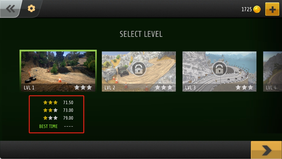 3、选择地图关卡,每个关卡都有不同的时间限制;