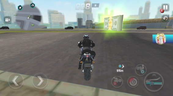 5、驾驶你的摩托在道路上收集各种物品来获得奖励,展示不同的特技动作也可以获得奖励。
