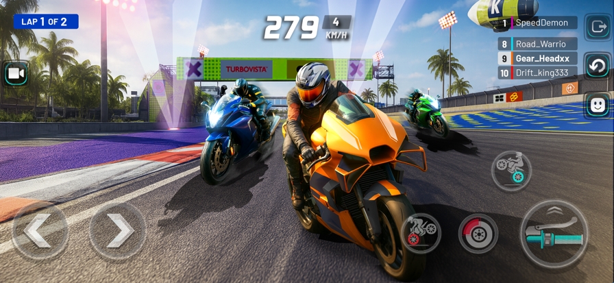6、逼真的物理学,模拟摩托车行为的各个方面;