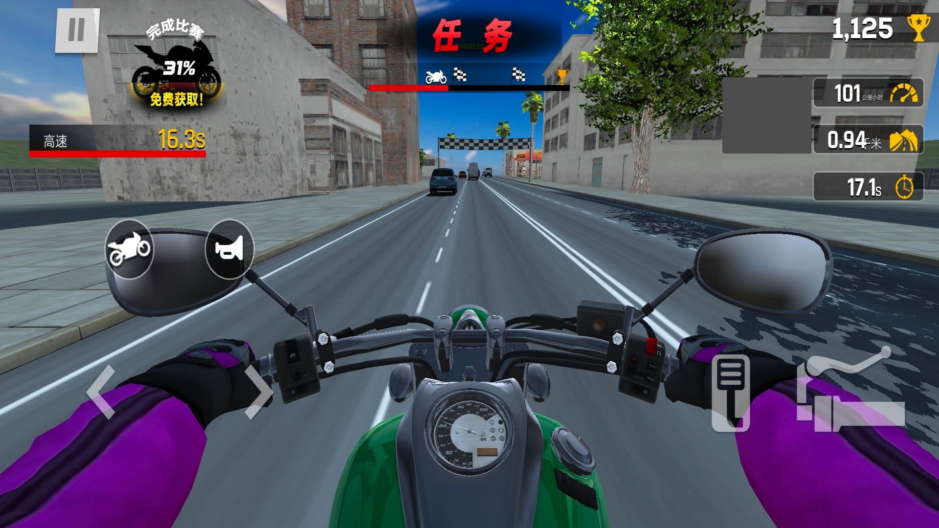 1、驾驶3D摩托在繁华街头飞驰,利用漂移技巧过弯时能积攒氮气加速、提升超车成功率,夜间赛段需注意突然出现的车辆干扰。