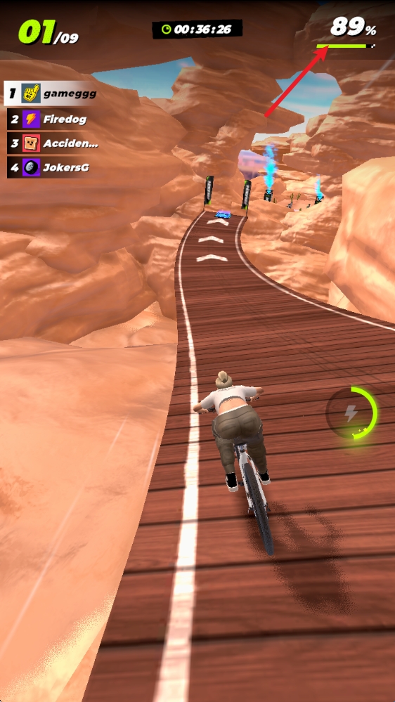 1、开始游戏后,点击屏幕即可开始骑行,左右拖动即可转弯。