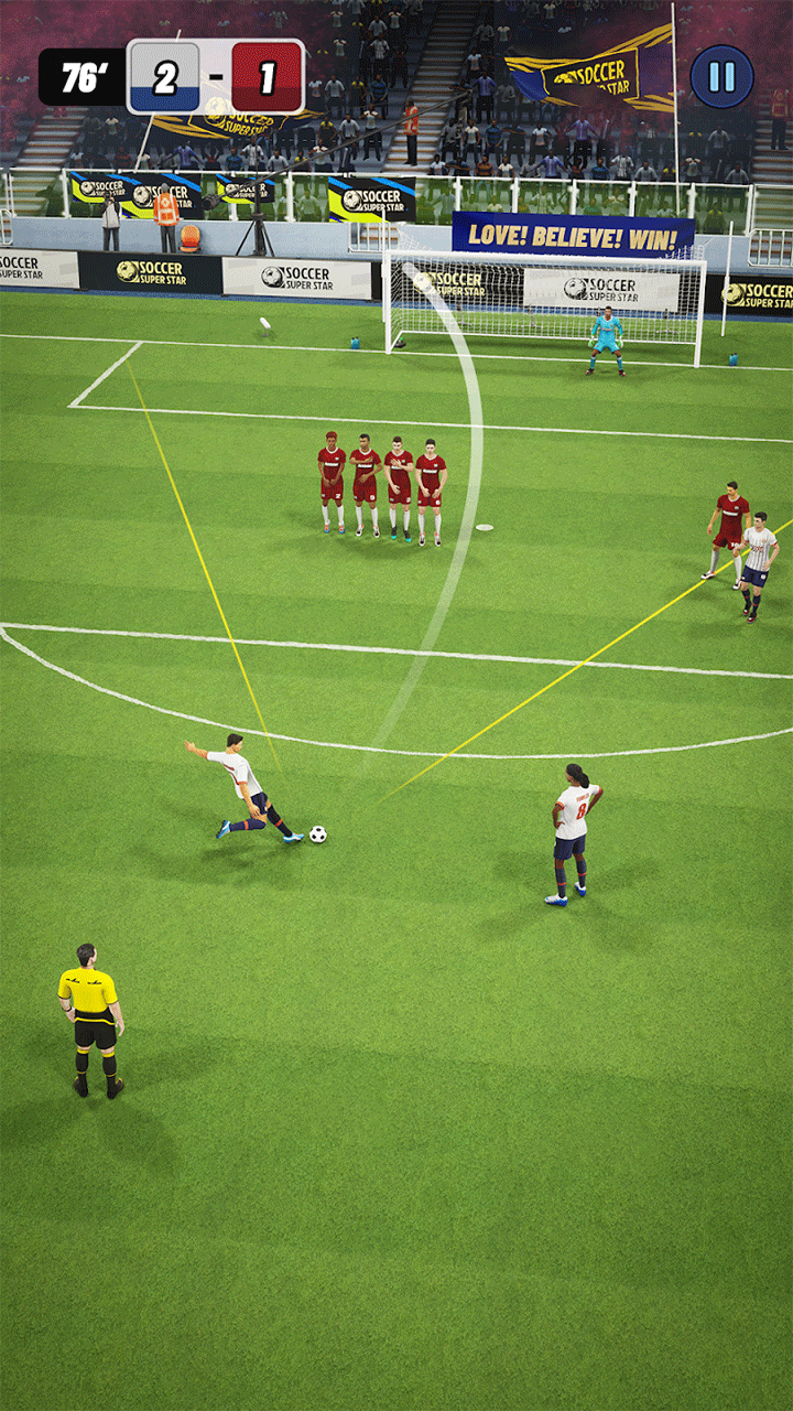 1、真实物理引擎:还原真实足球碰撞与弧线射门轨迹,带来极具代入感的比赛体验。
