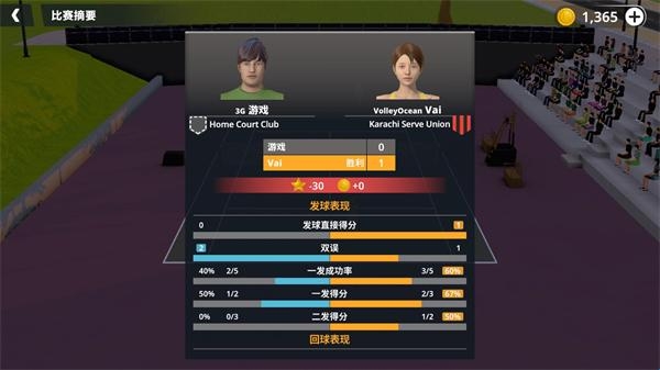 3、正式开始比赛后玩家可以点击屏幕控制角色移动,滑动屏幕来指挥角色发球或者击球,也可以什么都不管让角色自动进行比赛。
