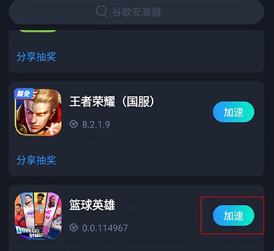 1、首先你需要一个加速器,在加速器里选择全明星街球派对国际服,点击“加速”。
