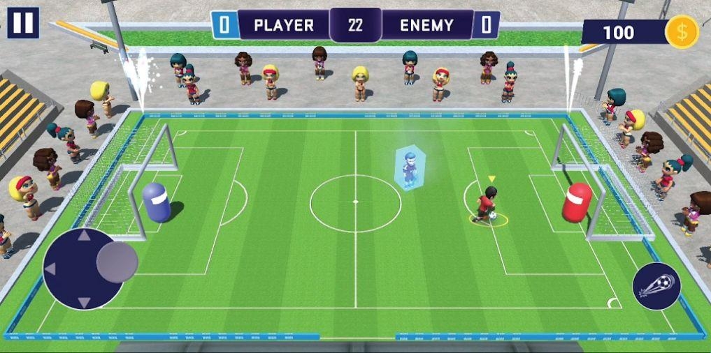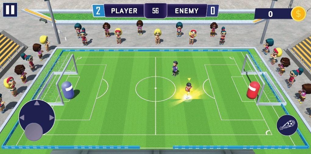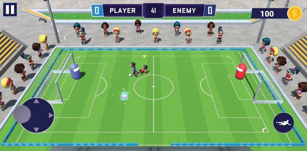 迷你足球之怒(MiniSoccerRage),一款画风卡通可爱的迷你足球竞技游戏。游戏真实还原了族球场场景设置以及玩法,玩家将和另一队开始比拼,在规定时间内,哪一方射中的足球次数越多就是获胜方。玩家需要通过摇杆和踢球动作来控制角色,并踢出完美的一球,感兴趣的小伙伴们不妨下载试试哦!