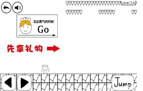3、在第一个问号中拿到钻石,回到起点,继续向左走,转屏之后立即跃起,否则就掉下去,之后即可顺利过关。(如果没有拿钻石,公主会把桥放掉导致过关失败)