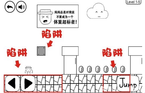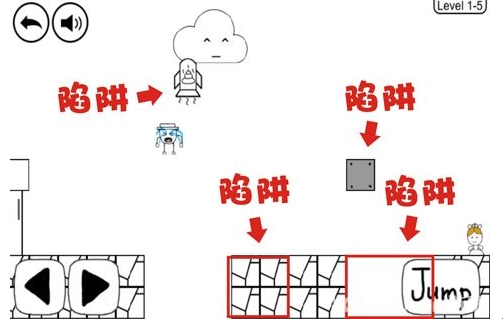 3、注意跳过之后要立即跳起,否则地面塌陷。塌陷之后的地板,数至第三格跳起顶出隐藏砖块,跃起过关。