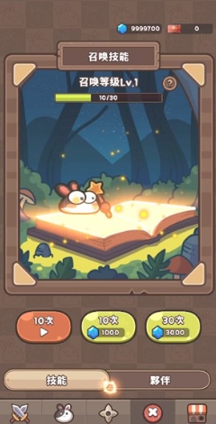 5、点击宝箱按钮可以消耗钻石来抽取技能与伙伴,每次抽取可以获得的技能与伙伴都是随机的。