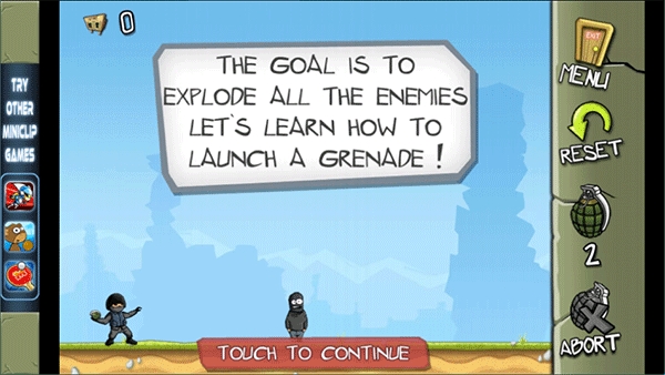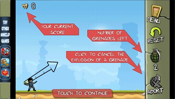 4、屏幕右方记录剩余的手榴弹数量,左上方记录你的得分,快来试试吧。