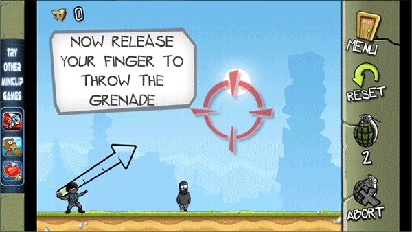 2、操控非常容易,玩家只需要拖动箭头来进行方位的选择,然后控制好你认为的力度即可,最终投掷手榴弹即可,不过手榴弹的数量是有限的。