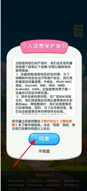 1、第一步进入下载安装好的游戏,点击同意相关的权限
