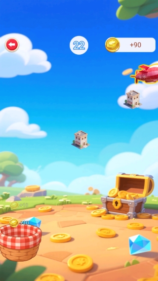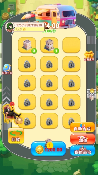 2.不断收集金币,用于购买新的基础房屋,持续合成,将您的建筑群提升至更高等级。