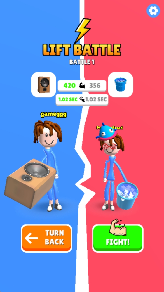 2、接着就是比拼力量的时候,各自举起手中的重物以获得肌肉值。