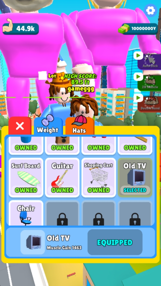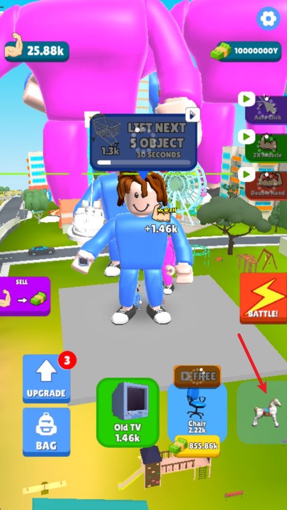 4、我们可以利用赚到的钞票来解锁更多物品,以提升肌肉值的增长速度。